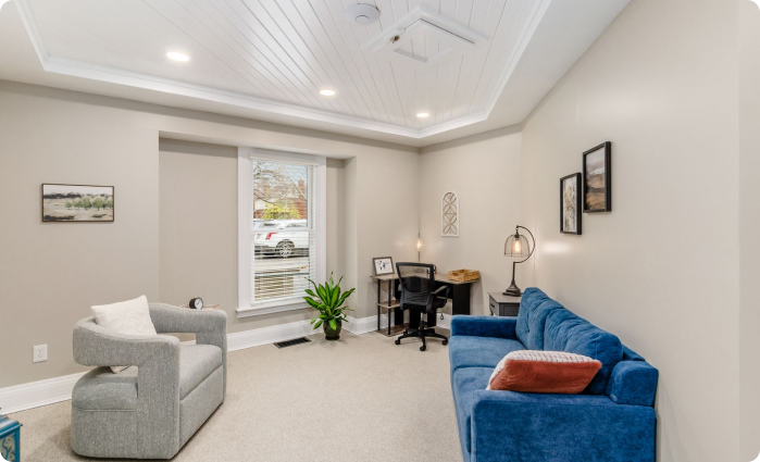 Our part-time office is designed for therapists who are just getting their practice started and needing to keep their costs low. It is super affordable and fully furnished and decorated.